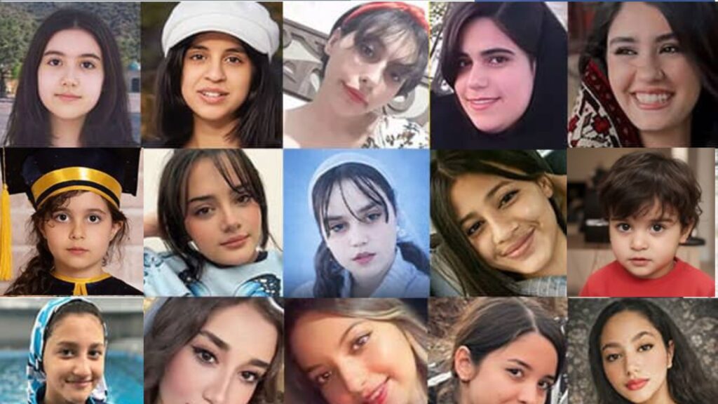 Nach Berichten iranischer Menschenrechtsgruppen wurden zahlreiche Kinder während der Proteste von staatlichen Sicherheitskräften getötet. Zu den Opfern gehört Anila Aboutalebian, ein achtjähriges Mädchen aus Isfahan. Mindestens 200 Schülerinnen und Schüler wurden identifiziert; viele weitere wurden verletzt, und Hunderte wurden in Haftanstalten des Regimes gebracht.