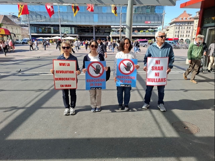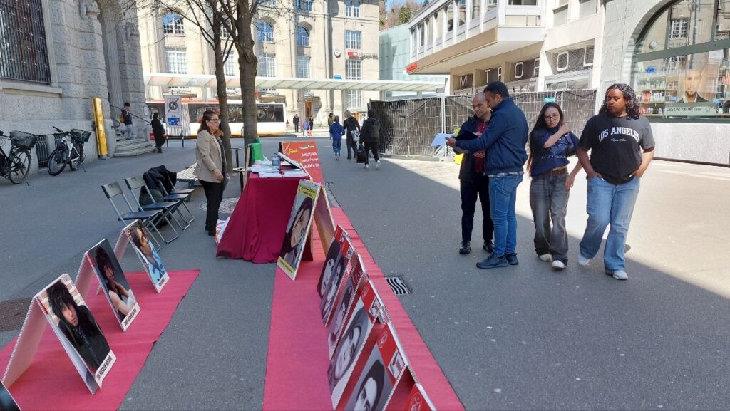 Aktivitäten der vergangenen Woche in der Schweiz (Genf, Bern und St. Gallen): Büchertische, Ausstellungen und Aktionen gegen die Hinrichtung politischer Gefangener.“