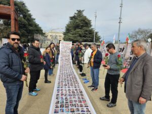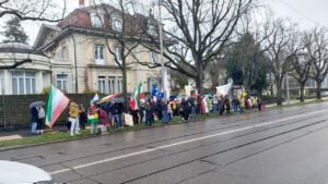 14 März 2026 Haute versammelten sich eine Gruppe von Iranern und Menschenrechtsaktivisten vor der Botschaft